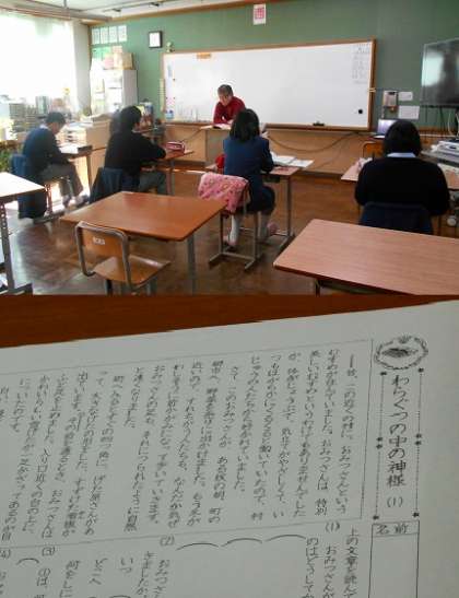 A組は「わらぐつの中の神様」という資料を読んで考えています。