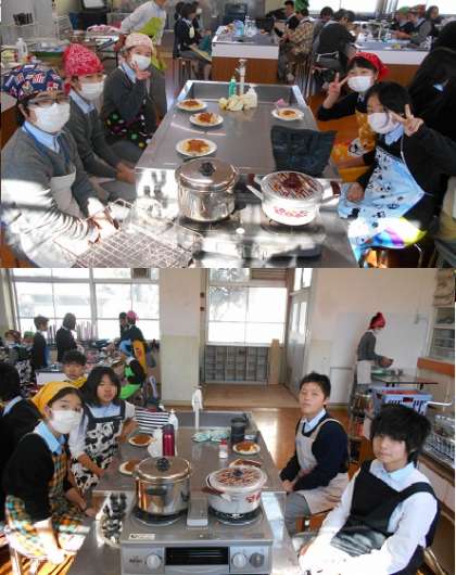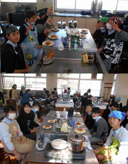 どの班もスパゲティミートソースが完成しました!お弁当や給食と一緒に美味しく食べてます。今日は後片付けで昼休みはなしですね。