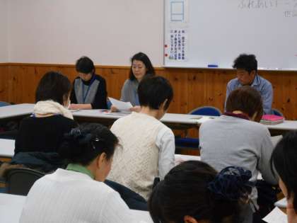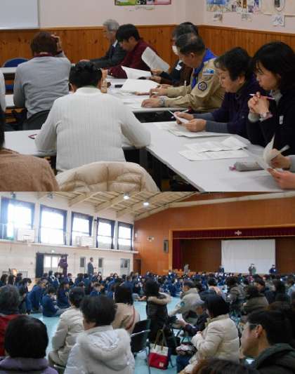 今年で6回目を迎えるふれあいトーク。まずは31あるグループの司会進行役の方に集まって頂いてPTAの高橋会長の挨拶の後、副会長の森川さんから説明を行って頂き,その後100名近い地域等の方と2年生生徒の顔合わせです。