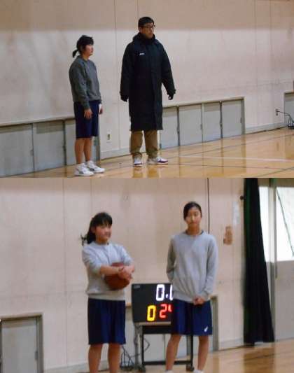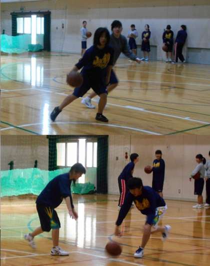 祝日の木曜日,午前中の体育館では女子バスケット部と剣道部が熱心に活動していました。