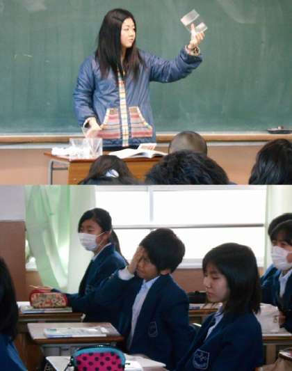 数学は体積についてです。四角錐と四角柱のひかくというように,錐の体積と柱の体積を比較し関係を調べます。