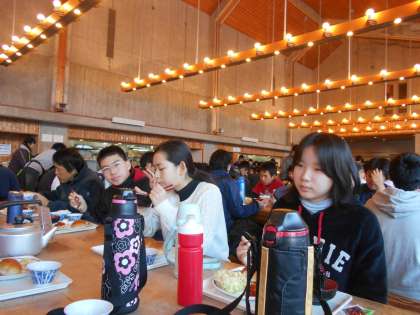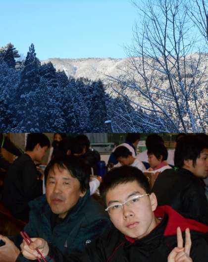 さわやかな朝です。山のゆきがたいように照らされて綺麗です。