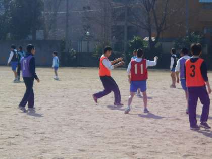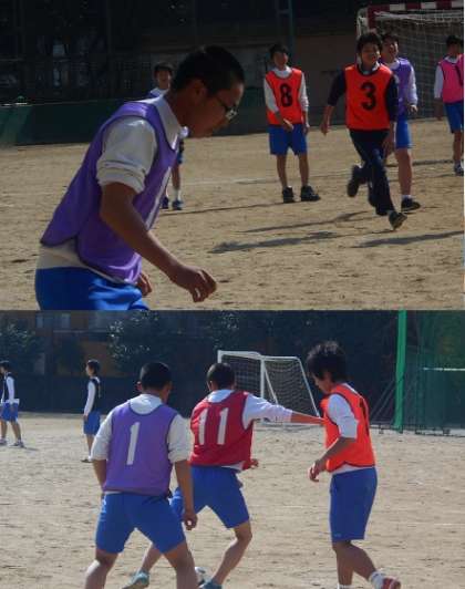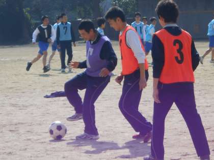 2年生男子はグラウンドでサッカーを楽しんでいます。