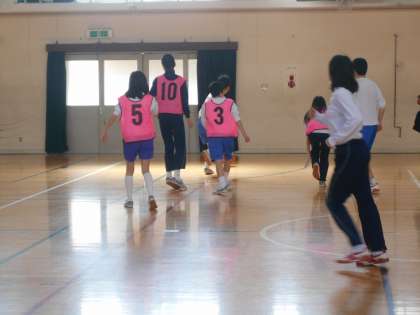 4人対5人のゲームですが,どちらのチームもよく走って頑張りました。