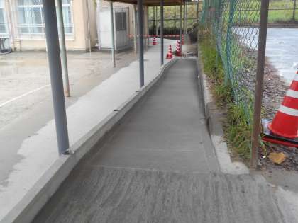 セメントが乾いたらサイドに転落防止の手すりが取り付けられます。