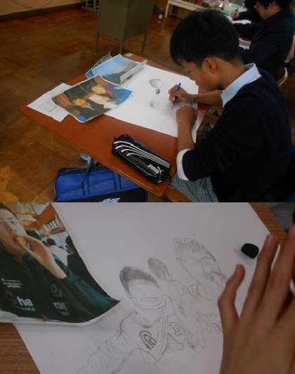 花背の合宿の写真を使って,イラストの似顔絵?を書いています。