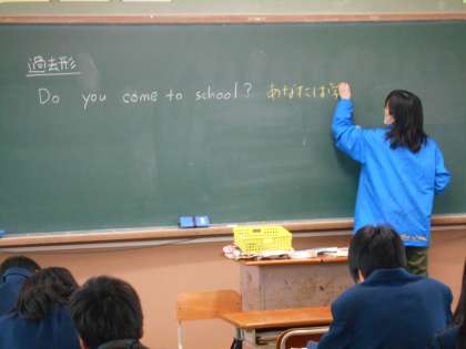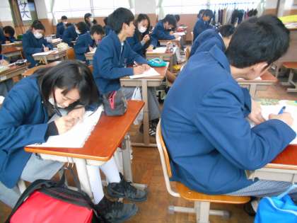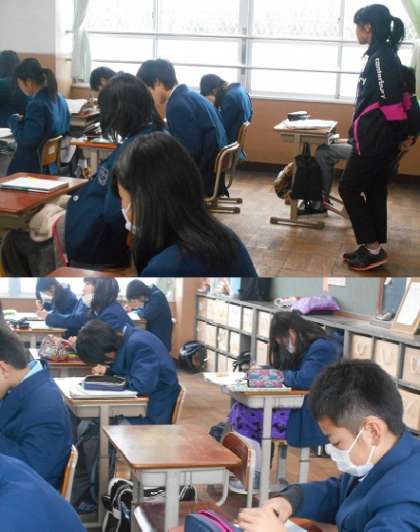 1年2組の英語のようすです。今日はインフルエンザの関係で,1年生では1組と2組だけが登校して学習しています。