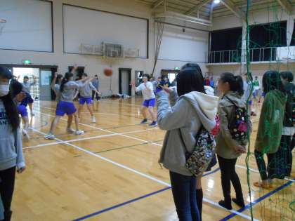 美術部,女子バスケット,女子バレー部の見学のようすです。