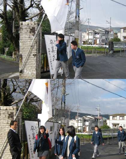 いよいよ卒業式の朝、3年生も少し早めに登校してきます。風が冷たい朝ですが,受付の先生も生徒も元気に来校者を迎えてくれてます。
