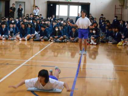 陸上部は普段やっている様々なトレーニングを披露してくれました。全員がきびきびと動いていましたね。
