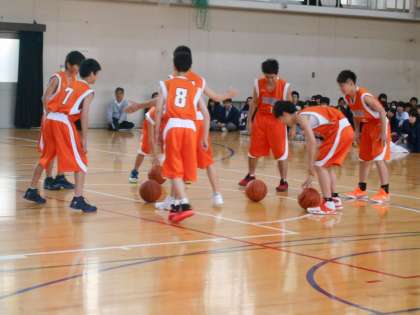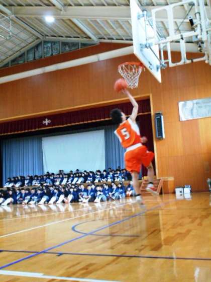 男子バスケットは声も良く出て迫力がありました。逆立ちのパフォーマンスも登場!