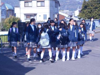 いつも明るい女子バレー部と朝の登校風景です。