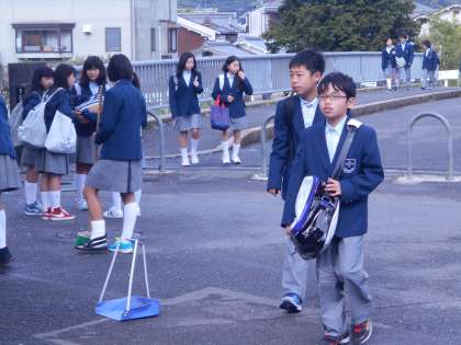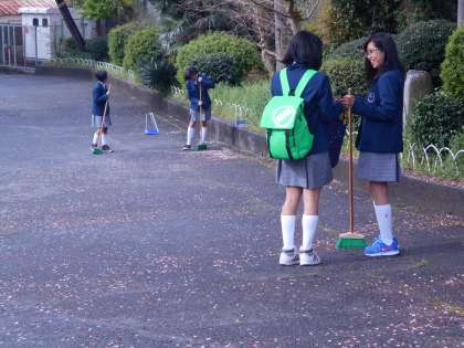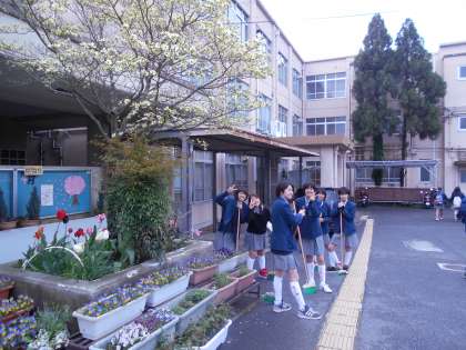 1年生の登校する姿は,とても初々しく感じます。陸上部も掃除をしてくれています。