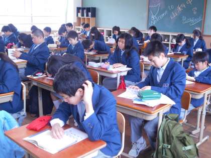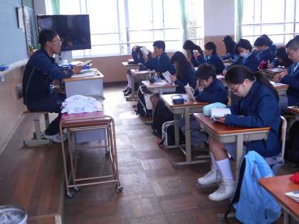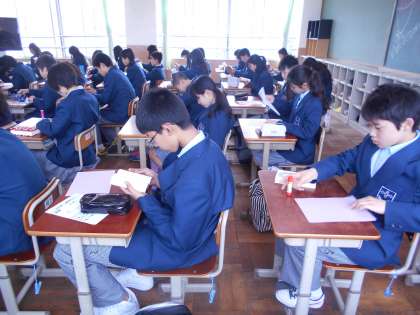最上階(4階)の1組での読書のようすです。まだ学級文庫は設置してませんが,自分で本を持ってきてくれています。
