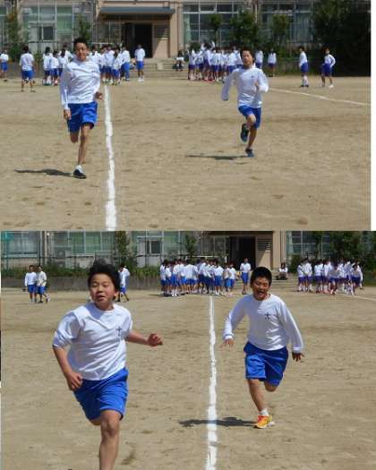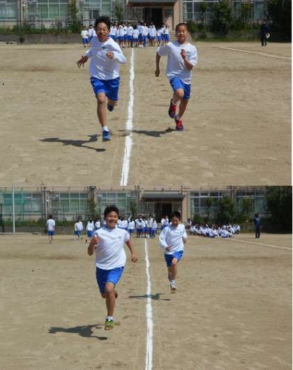 1組と4組は男女とも50メートル走の計測です。男子はゴール付近はスピードにも乗って迫力もあります。