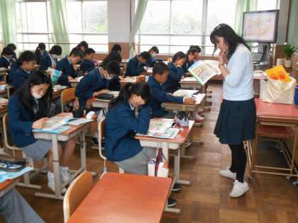 4組の英語のようすです。今日の目標は,大文字がしっかり書ける。テストもあり。