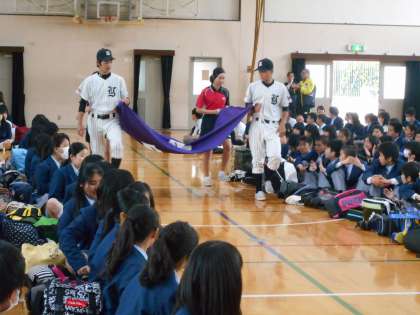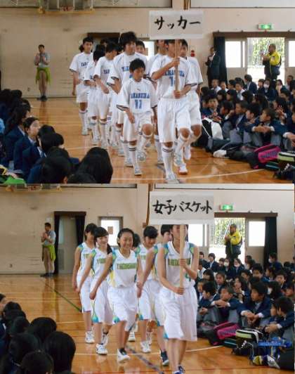 生徒会期を先頭に各部の入場です。司会は生徒会の須山さんです。
