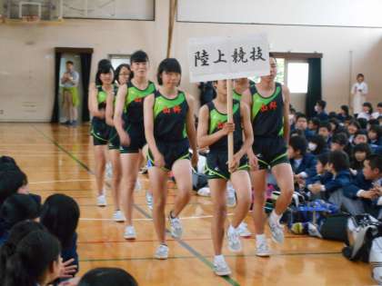 最後は陸上部の入場で,壇上に勢揃いしました。