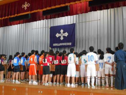最初は校歌を歌い同時に生徒会旗が掲揚されます。