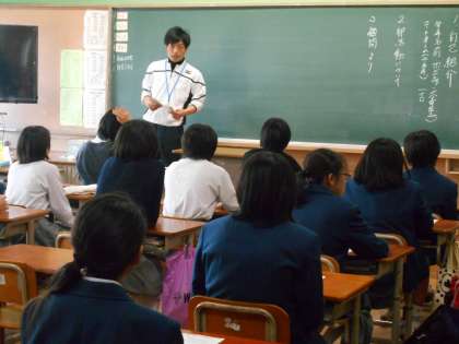 女子バレー部は,新入生も多く今年は教室が一杯になるぐらいの部員数となりました。
