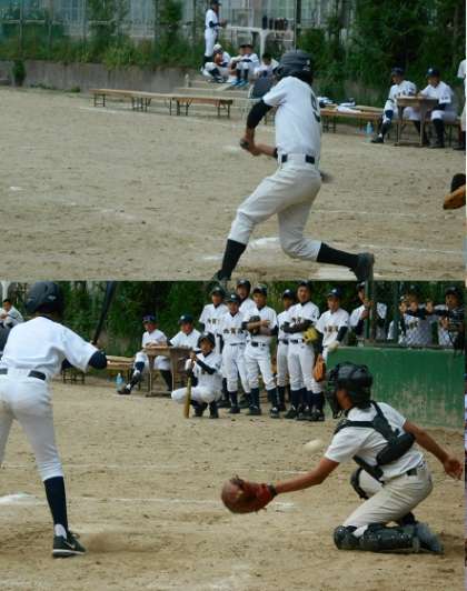 グラウンドでは野球部が練習試合を行っていました。対戦相手は西賀茂中学校です。
