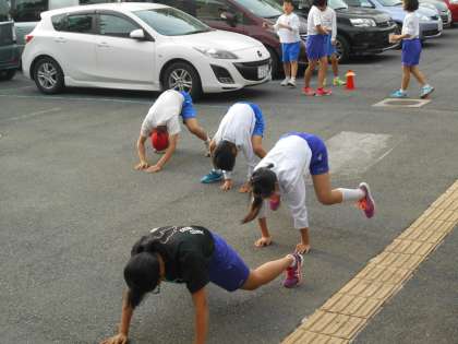 練習場所はグラウンド,中庭,玄関口と様々です。
