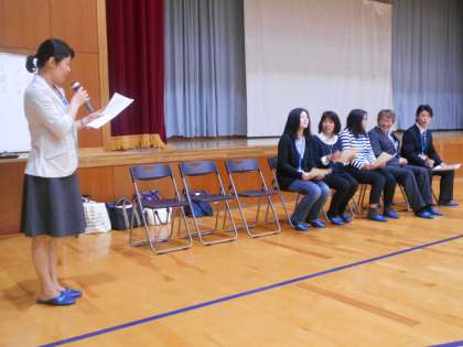 総会後に本部、3学年の学年委員長と副委員長、地域委員長と副委員長,本部の会計監査が紹介されました。