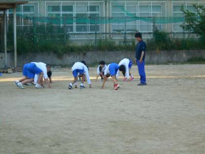 グラウンドではスターティングブロックを使ってスタートの練習しています。