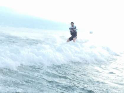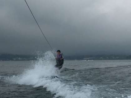 ウエイクボードの体験の様子です。なかなかカッコイイですね。