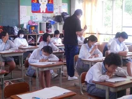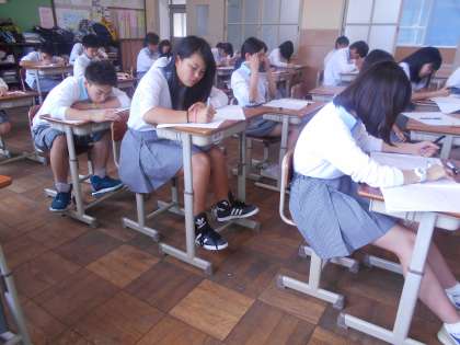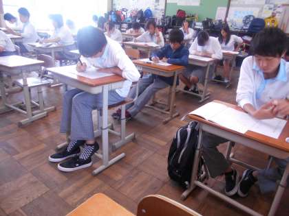 午後からは数学と社会です。まずは5時間目は数学の問題,クラスは7組と2組のようすです。