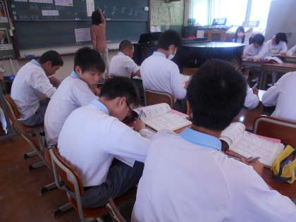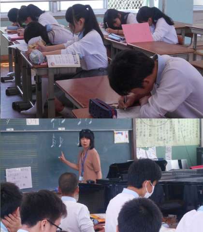 一旦歌い終わって,ちょうど「音符の書き方」を説明されてるところでした。