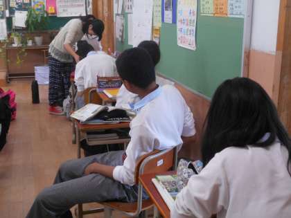 次の時間が英語ですが,早く来られた幸脇先生も生徒にアドバイスをしてくれています。