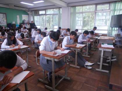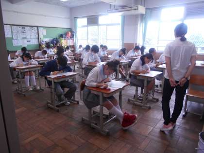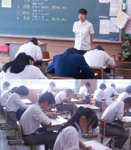 3年4組と6組のようすです。聞き取りテストに真剣に耳を傾けています。