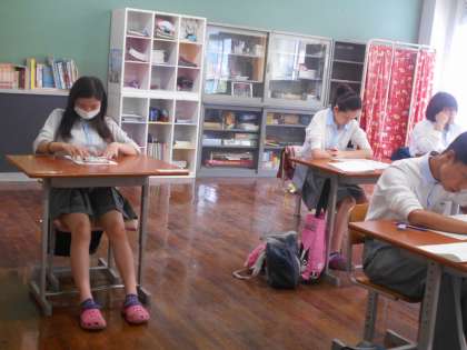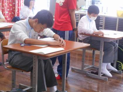 8組の3年生のテストのようすです。3年生は問題文も長文になり,難しくなります。