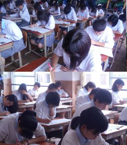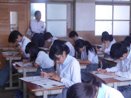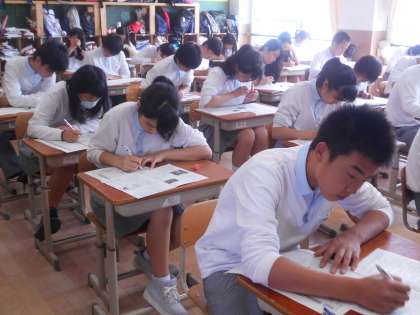 2年生1組と2組のテストのようすです。分野は歴史で,中世の日本・元寇などの辺りが範囲です。