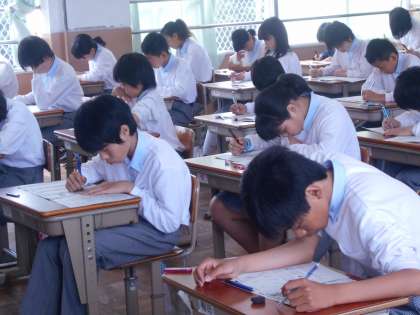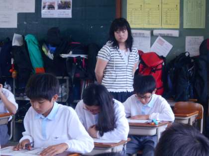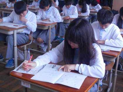 1年2組のテストのようすです。真剣に取り組んでいます。
