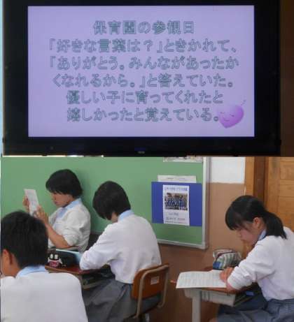 2年生では,この道徳にあたって,事前に保護者の方にアンケートを書いて頂きました。お子たちが生まれた日の事,成長される中で嬉しかったこと,成長する中で心配だったこと。子どもたちへの願いなどたくさんアンケートに答えて頂きました。