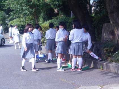 生活委員会のあいさつ運動とバレー部の清掃活動です。