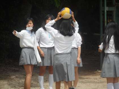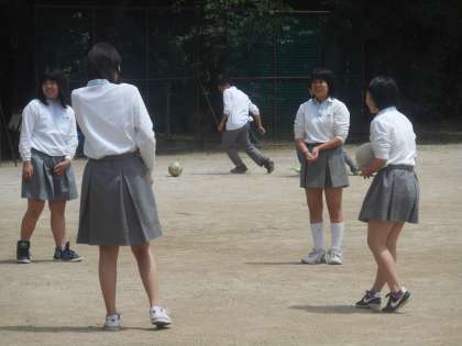 女子もバレーボールで,グラウンドのあちこちでたくさん遊んでいます。