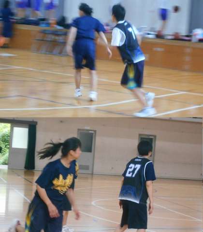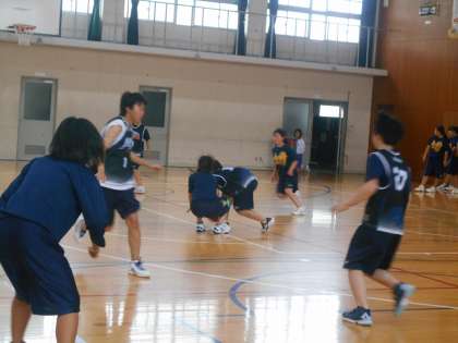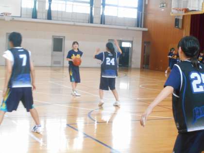 日曜日の体育館では,女子バスケット部が活動しています。練習の最後はゲーム形式での練習のようです。
