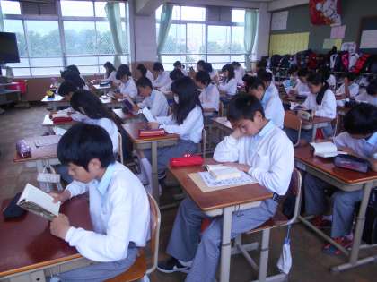 1年2組の朝の読書風景です。全員静かに本に向き合っています。