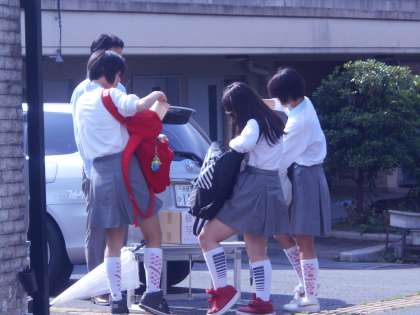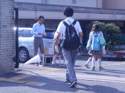 3年生は修学旅行の写真の申し込みを校門横で行っています。