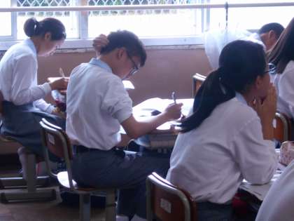 台車の運動について,理科室での実験の前に,まずは理論を学んでいるようです。