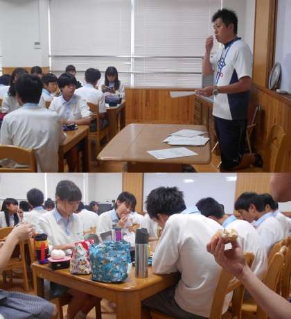 今日は雨で体育大会が延期になったため,昼休みにお弁当を持って評議会です。