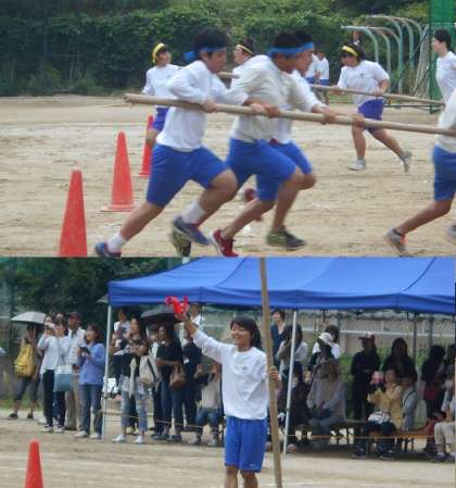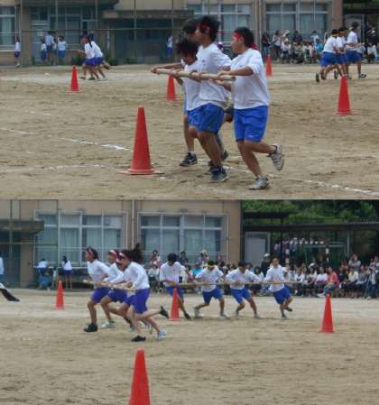 2年生の団体種目の「台風の目」です。優勝は1組でした。