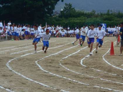 3年生の種目はクラス全員リレーです。走る順番は自由ですから差が開いたり縮んだりとめまぐるしいです。