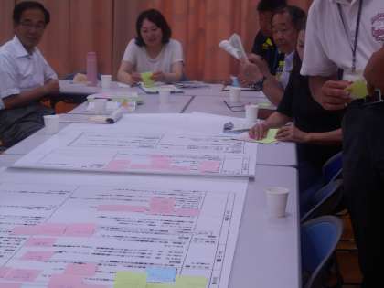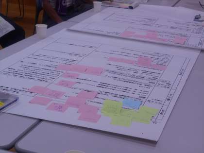 授業の後は参観した先生達で,授業の積極的な面や修正点などを出し合い,授業改善に向けて話し合います。