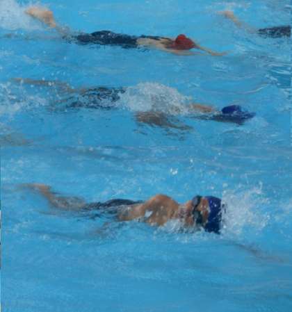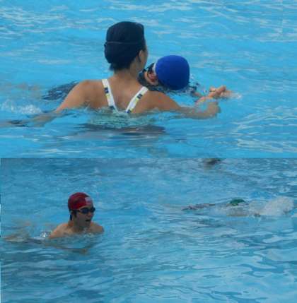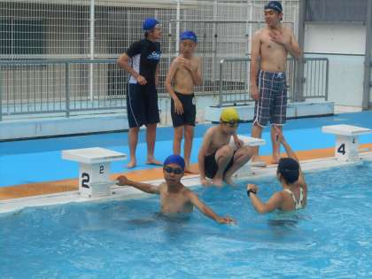 クロールで25メートル,平泳ぎで25メートル・・・・頑張ってチャレンジしています。