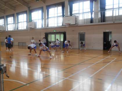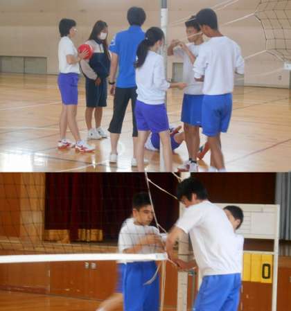 ネットの準備は自分たちでやり,準備運動も声をかけながらです。