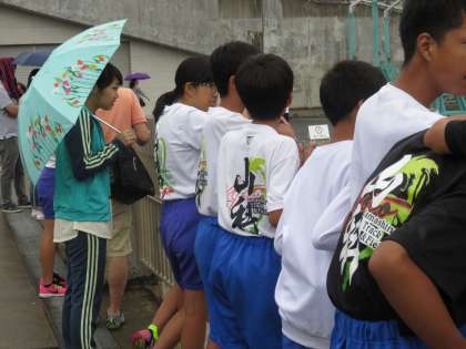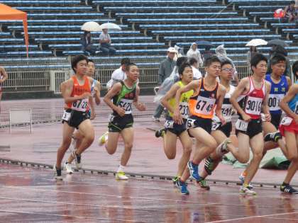 男子共通の1500M競走の二組目です。二人とも雨の中でしたが良く頑張りました。